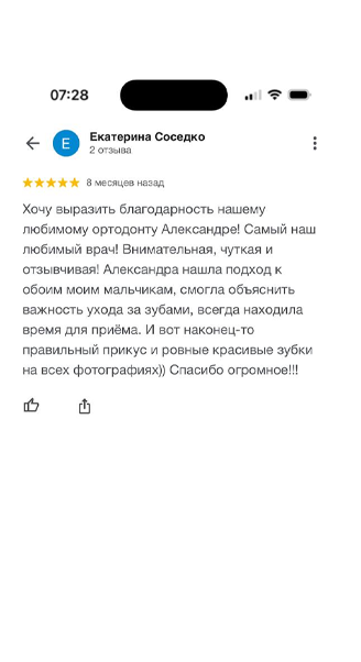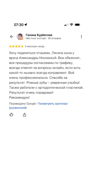 Для мене важливо, щоб пацієнти комфортно могли включити відвідування врача до свого графіку. Тому заздалегідь нагадую про запланований візит, попереджаю про можливі зміни в запису бо я берегу ваш час